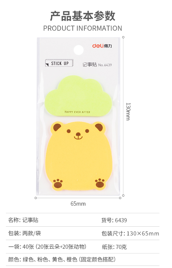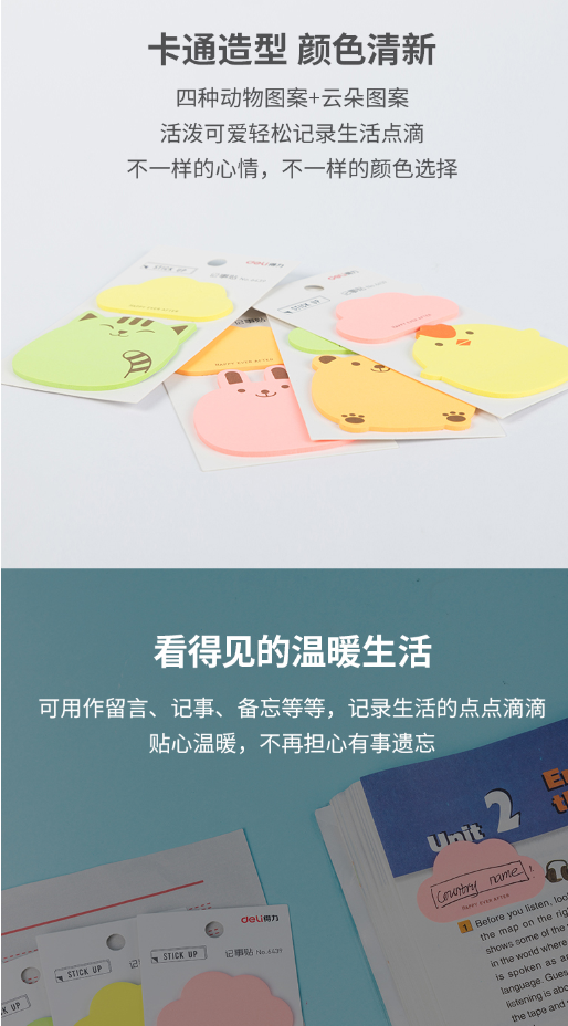 得力6439荧光百事贴 卡通动物告示贴 便条纸N次贴便签贴随手贴