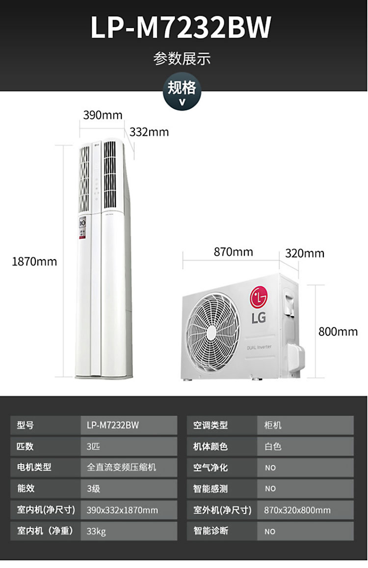 LG LS-J3532BE 正1.5匹冷暖型全直流变频空调客厅挂机变频高效节能 进口压缩机 静音家用