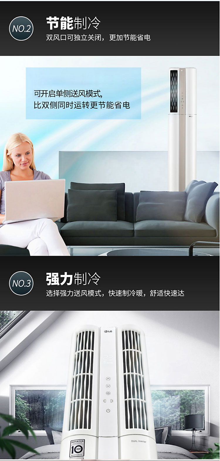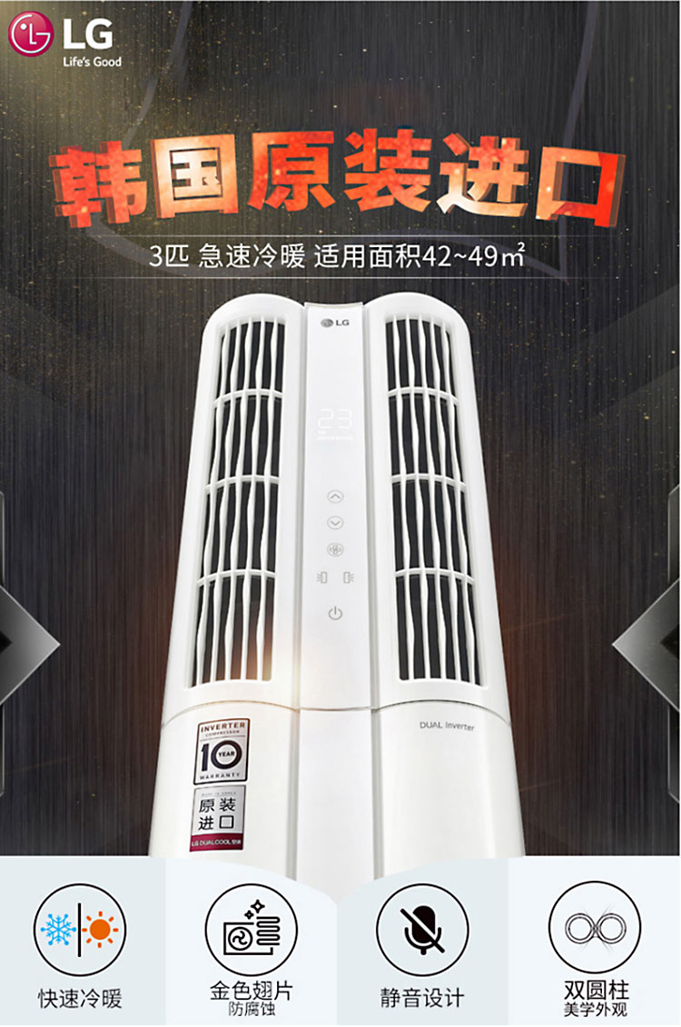 LG 进口 LP-N5231BE 大2匹家用客厅立柜式圆柱变频冷暖型空调 强力制冷 白色