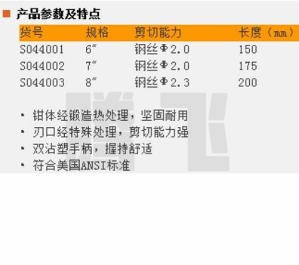 THE GREAT WALL/长城精工-8寸HRC64钢丝钳-8寸