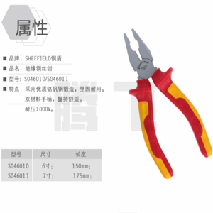 钢盾(SHEFFIELD) S046011 7"/ S046010 6" 绝缘钢丝钳