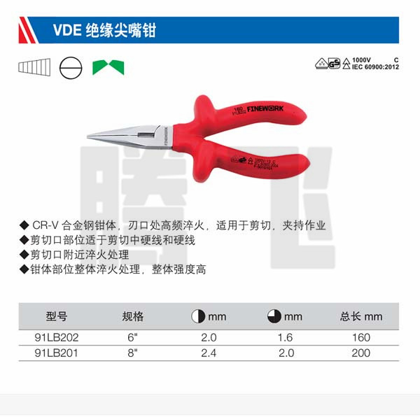 FINEWORK/泛沃克-绝缘尖嘴钳-91LB202