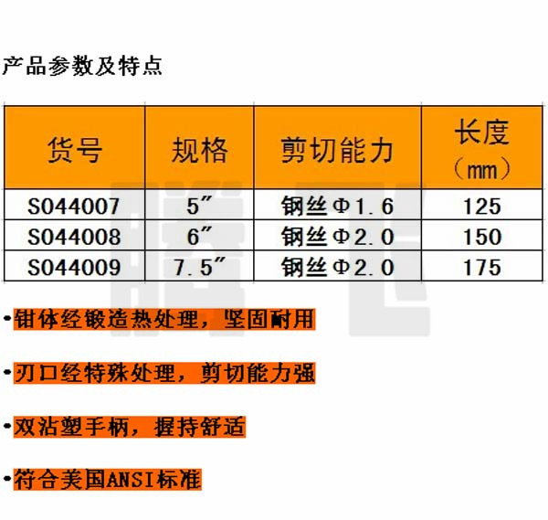 钢盾(SHEFFIELD) S044008 斜口钳6吋非绝缘 高档美式斜嘴钳