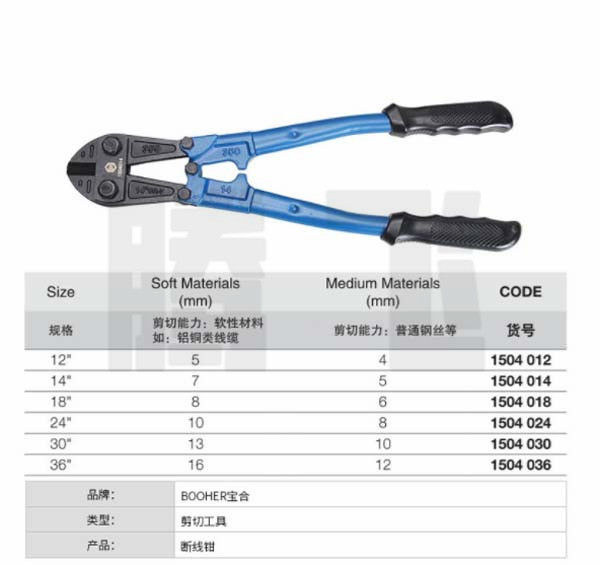 BOOHER宝合 1504012 断线钳12/14/18/24/30/36寸