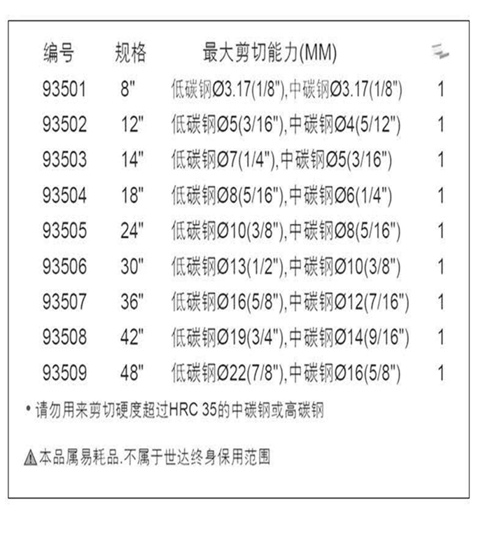 世达五金工具断线钳棘轮式电缆剪铁丝钢丝剪刀钳钢筋大力钳93501-93506