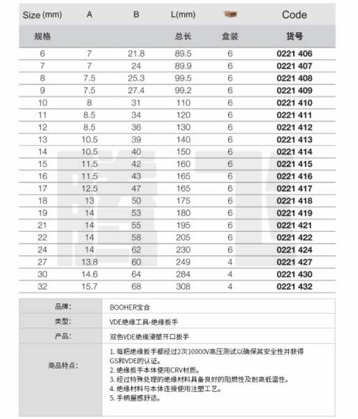 卡尔 C40108 浸塑绝缘开口扳手8/10/11/12/13/14/16/18/19/21/22/24/30/33mm