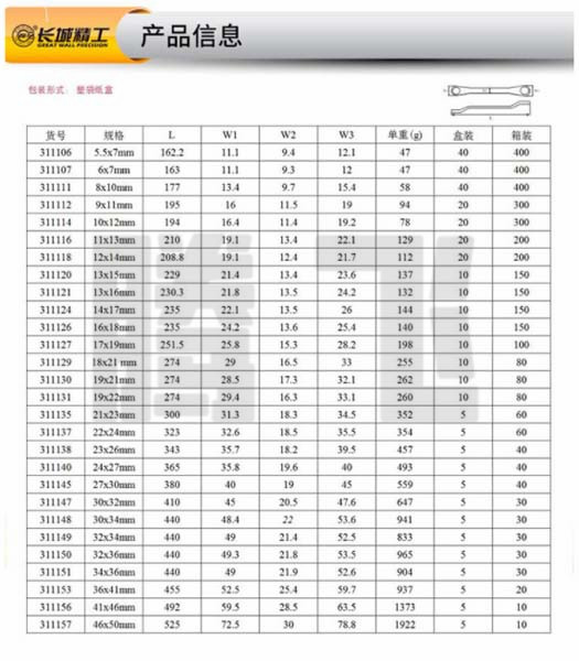 长城精工 311107/311120/311131/311147 双头梅花扳手