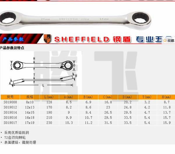 钢盾(SHEFFIELD) S019008 公制精抛光双头梅花快扳手8×10mm非绝缘