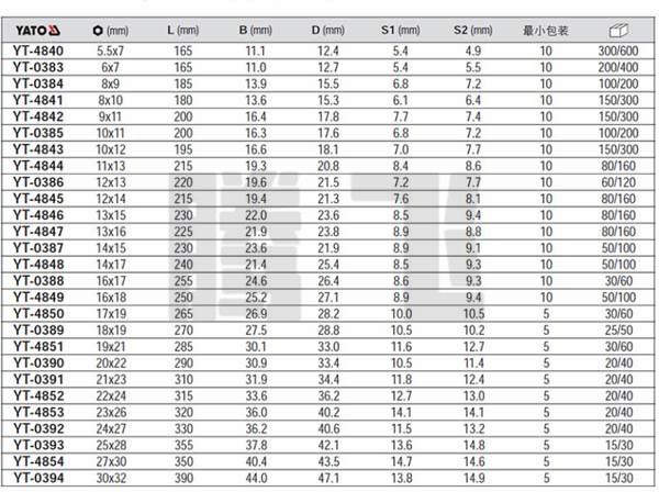 扳手规格: