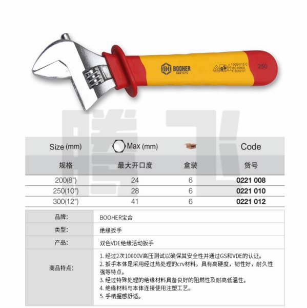 BOOHER宝合 0221008/0221010/0221012 双色VDE绝缘活动扳手