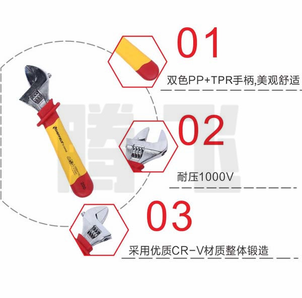 钢盾(SHEFFIELD) S154008 双色柄绝缘活动扳手200mm