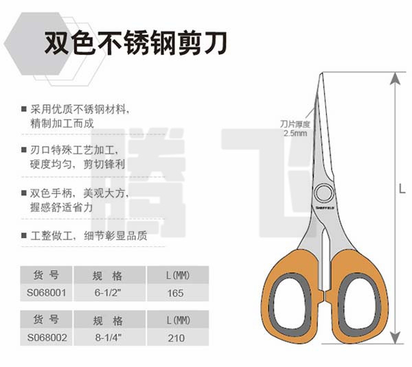 钢盾(SHEFFIELD) S068002 家用剪刀210mm 双色不锈钢