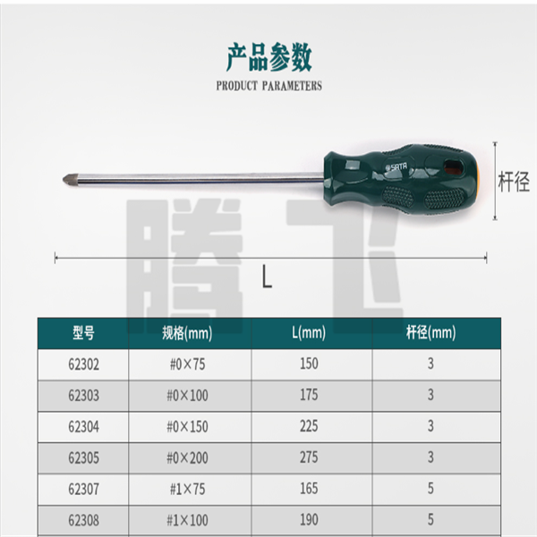 世达A系列十字形螺丝批PH2*100MM 62312/PH2*150MM 62313