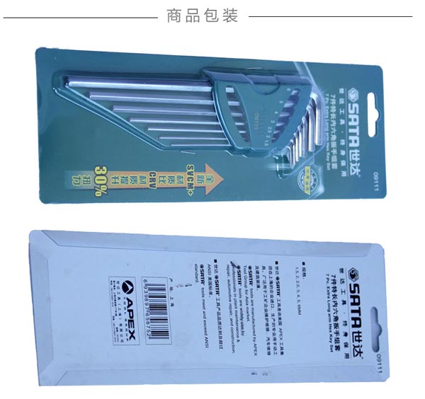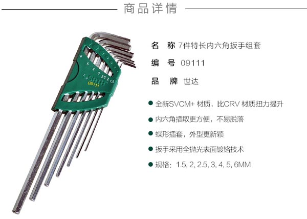 世达(SATA)09115 7件加长内六角扳手组套成套扳手