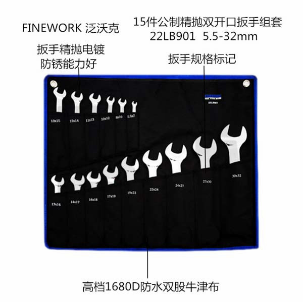 泛沃克 22LB901 15件精品镜面双开扳手套装5.5-32mm