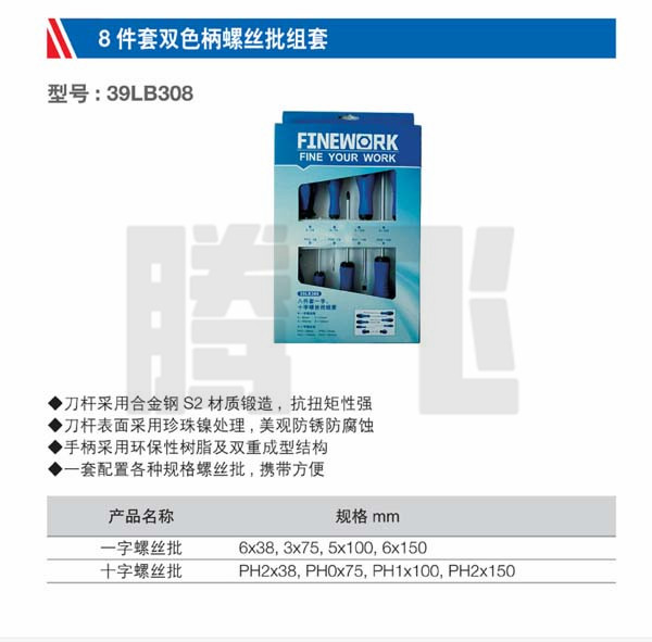 • 泛沃克 39LB308 8件套一字十字螺丝刀组套