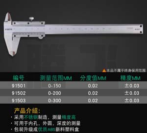 福吉斯特TK7D01150-F1游标卡尺,不带表,150mm(只)