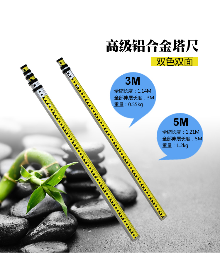 威士 铝合金3米5米7米塔尺 水泡水准仪经纬仪标尺可伸缩标杆三脚架塔扣