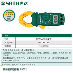 世达 Sata 袖珍钳形三位半数字万用表自动里程电子数显式 03021